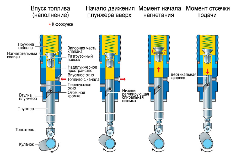 Стандартная схема работы плунжерной пары выглядит следующим образом: