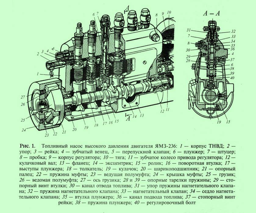 Группа компаний Бош выпускает различные модели ТНВД. Стандартное устройство топливного насоса предусматривает наличие следующих основных деталей и частей: