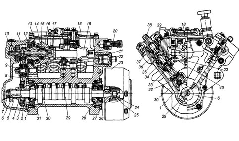 Устройство ТНВД КамАЗа предусматривает наличие следующих частей, деталей и узлов:
